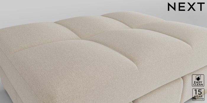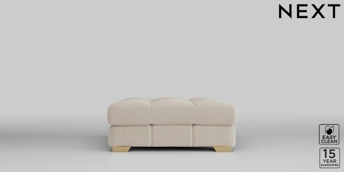 7.2.10 Brooke Deep Sit Footstool Tweedy Blend Easy Clean Oyster Square Angle - Brushed Brass | Made Click here to use our website with more accessibility support, for example screen readers