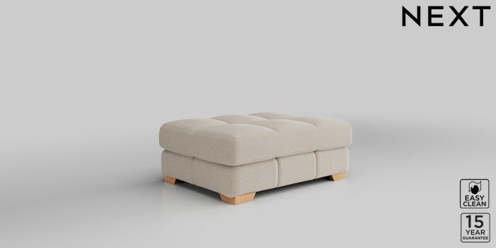 7.2.10 Brooke Deep Sit Footstool Tweedy Blend Easy Clean Oyster Square Angle - Light | Made Click here to use our website with more accessibility support, for example screen readers