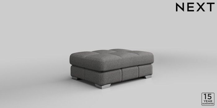 7.2.10 Brooke Deep Sit Footstool Tweedy Chenille Dark Grey Square Angle - Chrome Metal | Made Click here to use our website with more accessibility support, for example screen readers