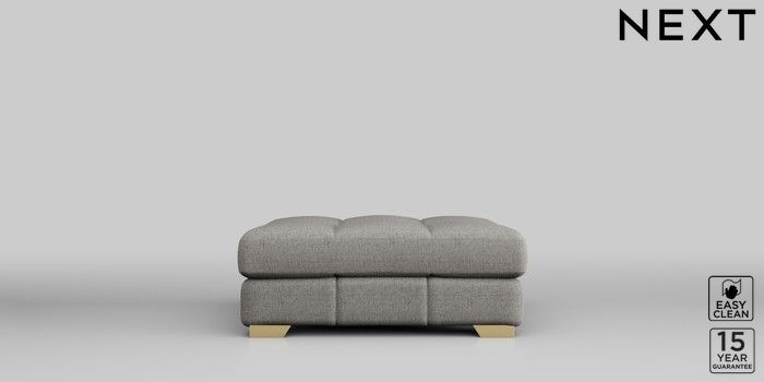 7.2.10 Brooke Deep Sit Footstool Woven Chenille Easy Clean Light Grey Square Angle - Brushed Brass | Made Click here to use our website with more accessibility support, for example screen readers