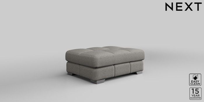 7.2.10 Brooke Deep Sit Footstool Woven Chenille Easy Clean Light Grey Square Angle - Gunmetal | Made Click here to use our website with more accessibility support, for example screen readers