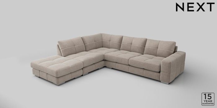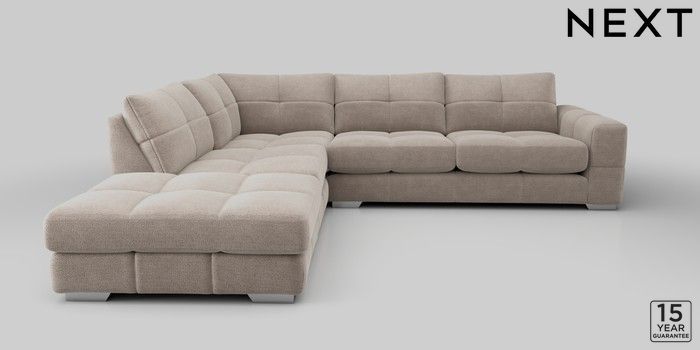 7.2.10 Brooke Deep Sit Large Open End Corner Chaise - Left Hand Boucle Chenille Light Natural Large Square Angle - Chrome Metal | Made Click here to use our website with more accessibility support, for example screen readers
