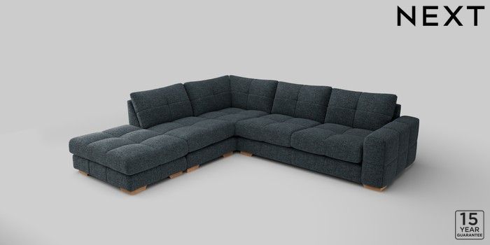 7.2.10 Brooke Deep Sit Large Open End Corner Chaise - Left Hand Chunky Chenille Dark Navy Blue Large Square Angle - Light | Made Click here to use our website with more accessibility support, for example screen readers
