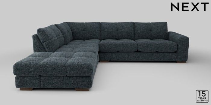 7.2.10 Brooke Deep Sit Large Open End Corner Chaise - Left Hand Chunky Chenille Dark Navy Blue Large Square Angle - Mid | Made Click here to use our website with more accessibility support, for example screen readers