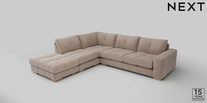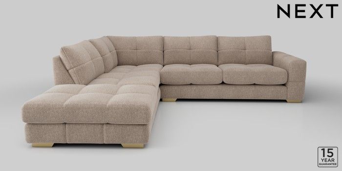 7.2.10 Brooke Deep Sit Large Open End Corner Chaise - Left Hand Chunky Chenille Light Dove Large Square Angle - Brushed Brass | Made Click here to use our website with more accessibility support, for example screen readers
