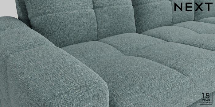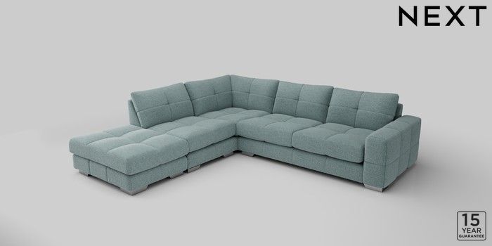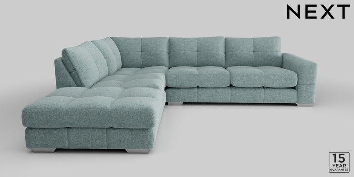 7.2.10 Brooke Deep Sit Large Open End Corner Chaise - Left Hand Chunky Chenille Light Teal Green Large Square Angle - Chrome Metal | Made Click here to use our website with more accessibility support, for example screen readers