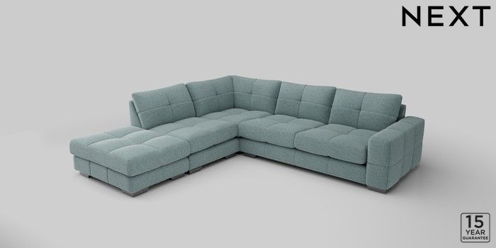 7.2.10 Brooke Deep Sit Large Open End Corner Chaise - Left Hand Chunky Chenille Light Teal Green Large Square Angle - Gunmetal | Made Click here to use our website with more accessibility support, for example screen readers
