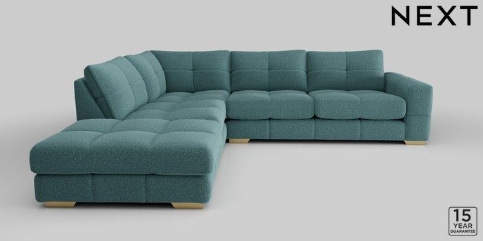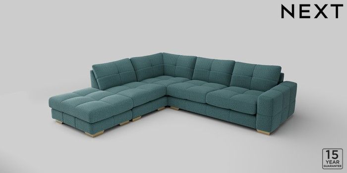 7.2.10 Brooke Deep Sit Large Open End Corner Chaise - Left Hand Chunky Chenille Mid Teal Green Large Square Angle - Brushed Brass | Made Click here to use our website with more accessibility support, for example screen readers