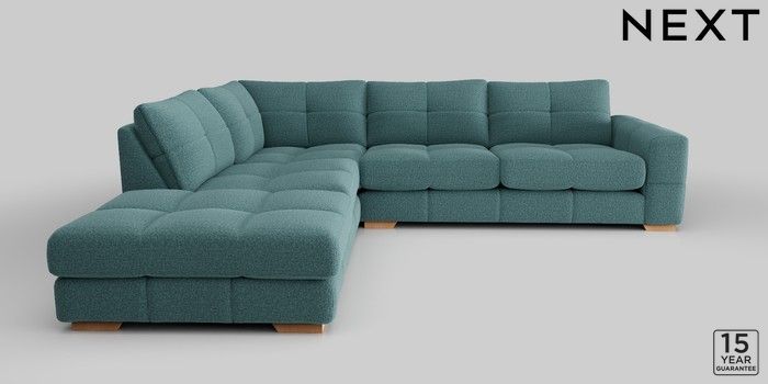 7.2.10 Brooke Deep Sit Large Open End Corner Chaise - Left Hand Chunky Chenille Mid Teal Green Large Square Angle - Light | Made Click here to use our website with more accessibility support, for example screen readers