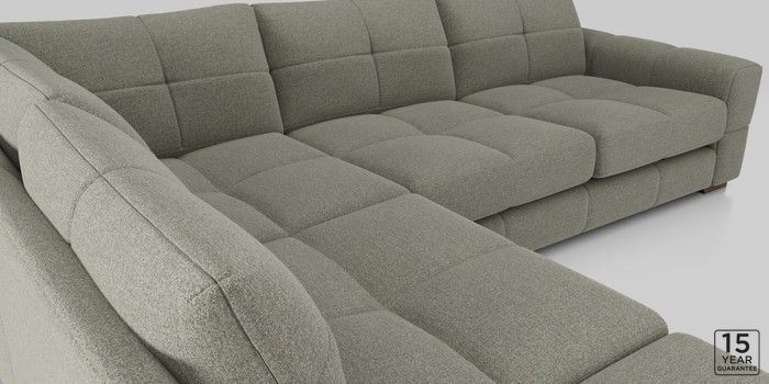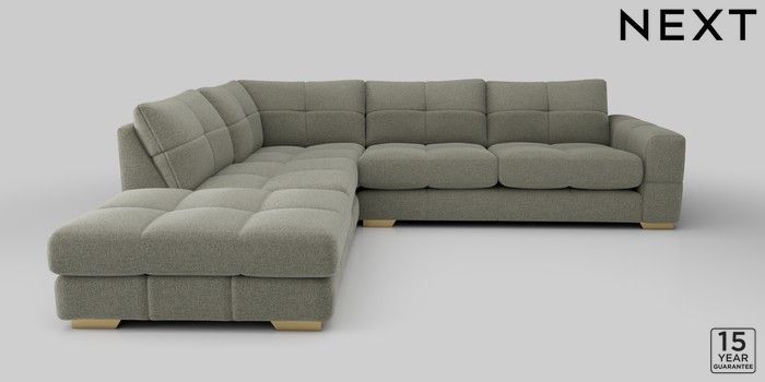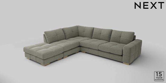 7.2.10 Brooke Deep Sit Large Open End Corner Chaise - Left Hand Chunky Marl Light Olive Green Large Square Angle - Brushed Brass | Made Click here to use our website with more accessibility support, for example screen readers