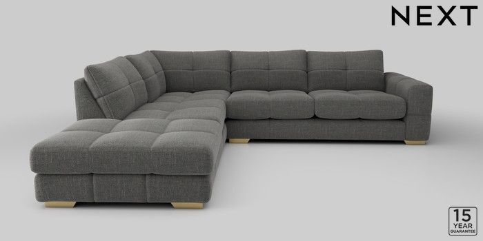 7.2.10 Brooke Deep Sit Large Open End Corner Chaise - Left Hand Chunky Texture Dark Grey Large Square Angle - Brushed Brass | Made Click here to use our website with more accessibility support, for example screen readers
