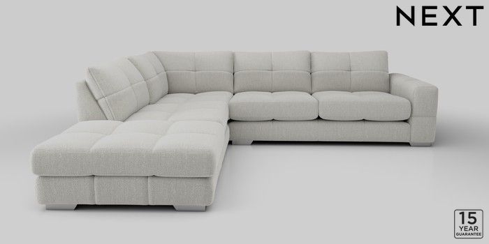 7.2.10 Brooke Deep Sit Large Open End Corner Chaise - Left Hand Chunky Texture Dove Large Square Angle - Chrome Metal | Made Click here to use our website with more accessibility support, for example screen readers