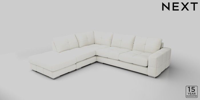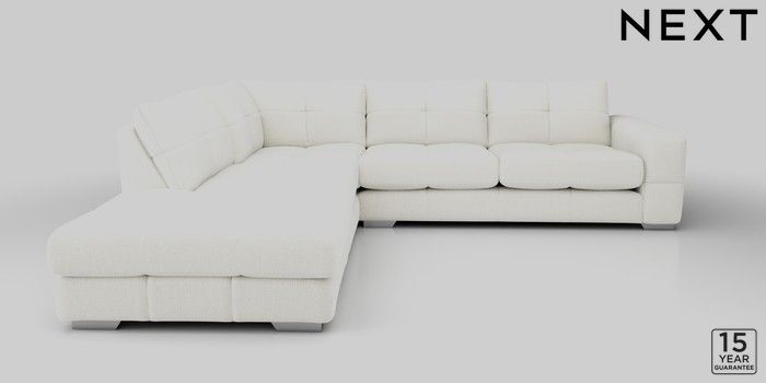 7.2.10 Brooke Deep Sit Large Open End Corner Chaise - Left Hand Chunky Texture Oyster Large Square Angle - Chrome Metal | Made Click here to use our website with more accessibility support, for example screen readers