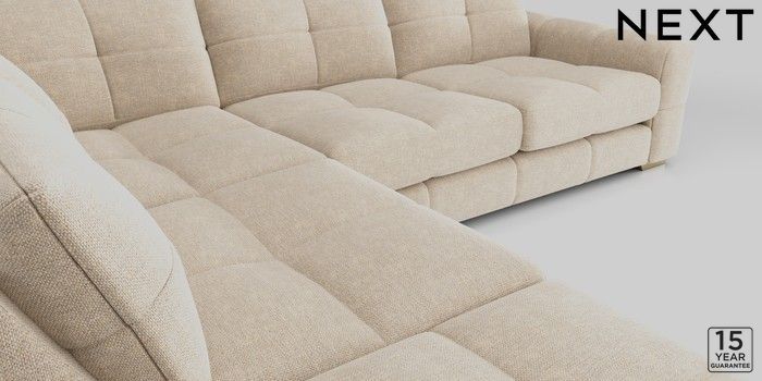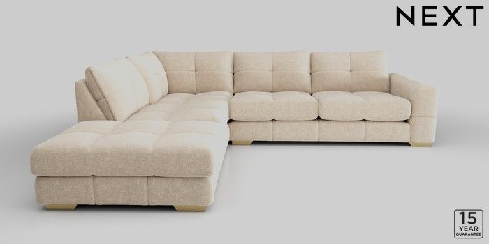 7.2.10 Brooke Deep Sit Large Open End Corner Chaise - Left Hand Chunky Weave Cream Large Square Angle - Brushed Brass | Made Click here to use our website with more accessibility support, for example screen readers