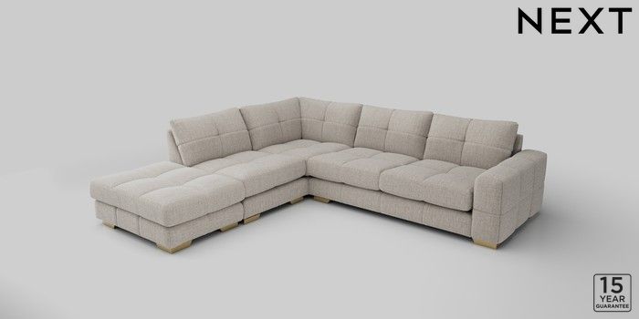 7.2.10 Brooke Deep Sit Large Open End Corner Chaise - Left Hand Chunky Weave Dove Grey Large Square Angle - Brushed Brass | Made Click here to use our website with more accessibility support, for example screen readers