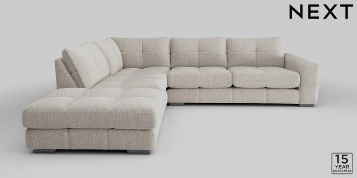 7.2.10 Brooke Deep Sit Large Open End Corner Chaise - Left Hand Chunky Weave Dove Grey Large Square Angle - Gunmetal | Made Click here to use our website with more accessibility support, for example screen readers