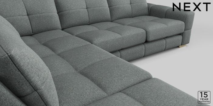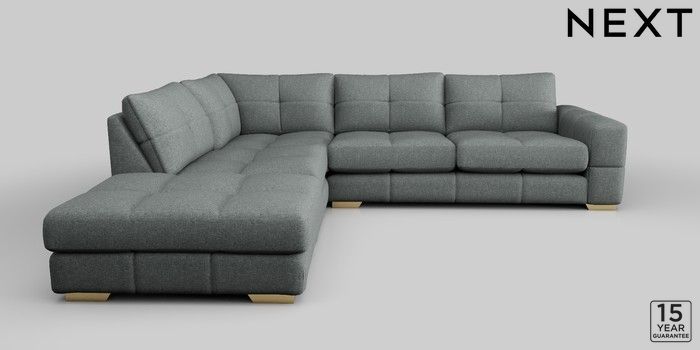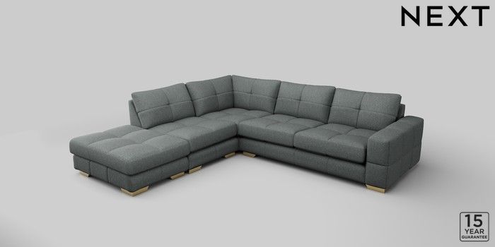 7.2.10 Brooke Deep Sit Large Open End Corner Chaise - Left Hand Chunky Weave Mid Grey Large Square Angle - Brushed Brass | Made Click here to use our website with more accessibility support, for example screen readers