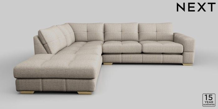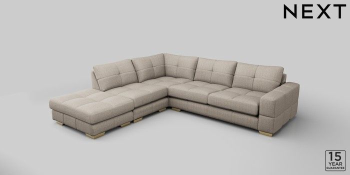 7.2.10 Brooke Deep Sit Large Open End Corner Chaise - Left Hand Chunky Weave Mid Natural Large Square Angle - Brushed Brass | Made Click here to use our website with more accessibility support, for example screen readers
