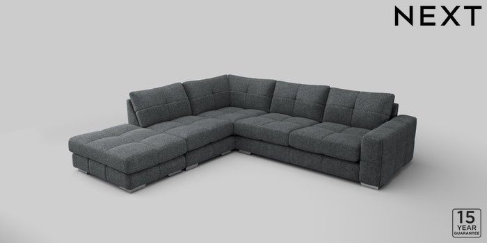 7.2.10 Brooke Deep Sit Large Open End Corner Chaise - Left Hand Cotswold Chenille Dark Grey Large Square Angle - Chrome Metal | Made Click here to use our website with more accessibility support, for example screen readers