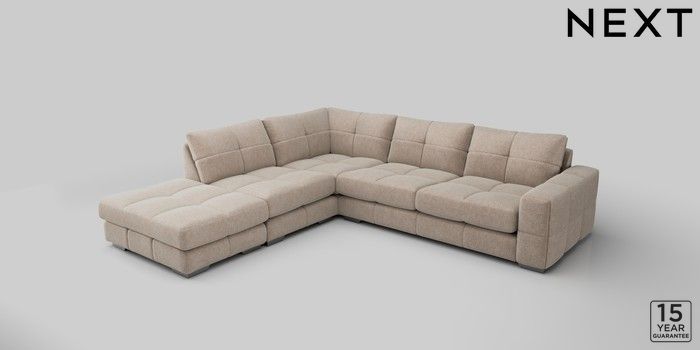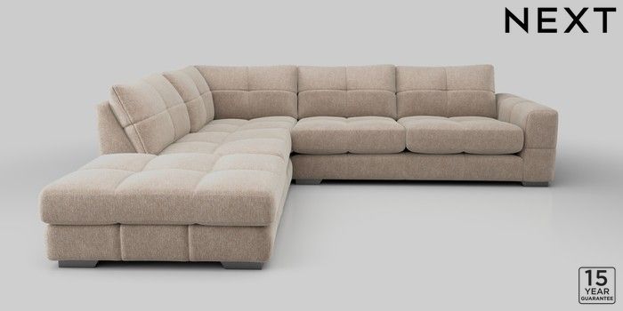 7.2.10 Brooke Deep Sit Large Open End Corner Chaise - Left Hand Cotswold Chenille Light Natural Large Square Angle - Gunmetal | Made Click here to use our website with more accessibility support, for example screen readers