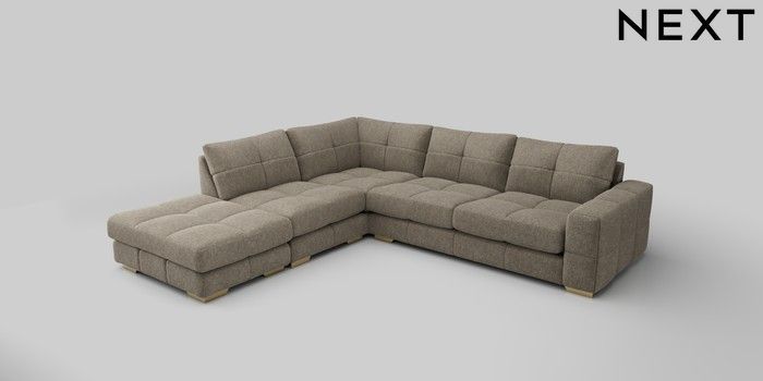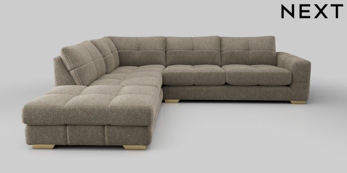 7.2.10 Brooke Deep Sit Large Open End Corner Chaise - Left Hand Cotswold Chenille Mid Mink Brown Large Square Angle - Brushed Brass | Made Click here to use our website with more accessibility support, for example screen readers