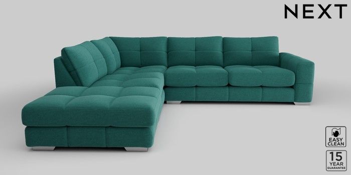 7.2.10 Brooke Deep Sit Large Open End Corner Chaise - Left Hand Fine Chenille Easy Clean Dark Juniper Green Large Square Angle - Chrome Metal | Made Click here to use our website with more accessibility support, for example screen readers