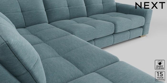 7.2.10 Brooke Deep Sit Large Open End Corner Chaise - Left Hand Fine Chenille Easy Clean Mid Blue Large Square Angle - Brushed Brass | Made Click here to use our website with more accessibility support, for example screen readers