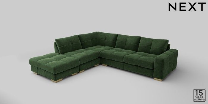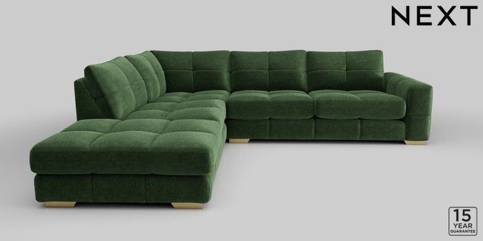 7.2.10 Brooke Deep Sit Large Open End Corner Chaise - Left Hand Luxe Chenille Dark Green Large Square Angle - Brushed Brass | Made Click here to use our website with more accessibility support, for example screen readers