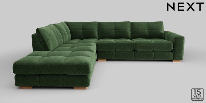 7.2.10 Brooke Deep Sit Large Open End Corner Chaise - Left Hand Luxe Chenille Dark Green Large Square Angle - Light | Made Click here to use our website with more accessibility support, for example screen readers