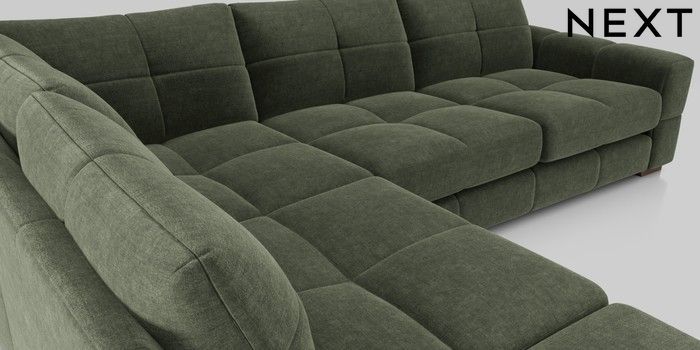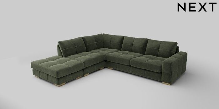 7.2.10 Brooke Deep Sit Large Open End Corner Chaise - Left Hand Luxe Chenille Mid Green Large Square Angle - Brushed Brass | Made Click here to use our website with more accessibility support, for example screen readers