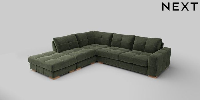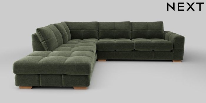 7.2.10 Brooke Deep Sit Large Open End Corner Chaise - Left Hand Luxe Chenille Mid Green Large Square Angle - Light | Made Click here to use our website with more accessibility support, for example screen readers