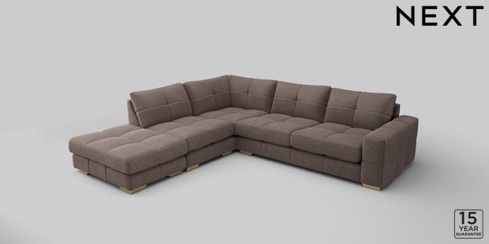 7.2.10 Brooke Deep Sit Large Open End Corner Chaise - Left Hand Luxe Chenille Mink Brown Large Square Angle - Brushed Brass | Made Click here to use our website with more accessibility support, for example screen readers