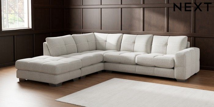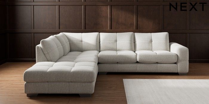 7.2.10 Brooke Deep Sit Large Open End Corner Chaise - Left Hand Multi Weave Light Blue Large Square Angle - Gunmetal | Made Click here to use our website with more accessibility support, for example screen readers