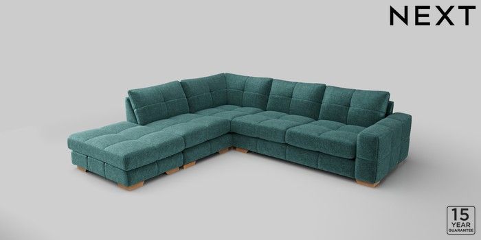 7.2.10 Brooke Deep Sit Large Open End Corner Chaise - Left Hand Plush Chenille Dark Teal Green Large Square Angle - Light | Made Click here to use our website with more accessibility support, for example screen readers