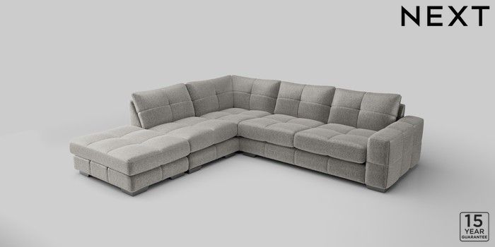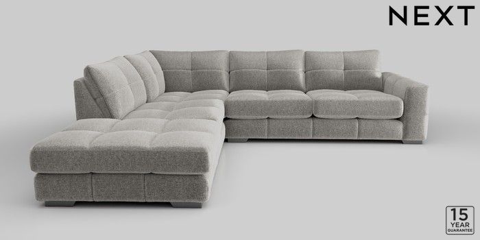 7.2.10 Brooke Deep Sit Large Open End Corner Chaise - Left Hand Plush Chenille Light Grey Large Square Angle - Gunmetal | Made Click here to use our website with more accessibility support, for example screen readers