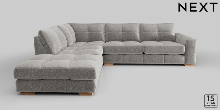 7.2.10 Brooke Deep Sit Large Open End Corner Chaise - Left Hand Plush Chenille Light Grey Large Square Angle - Light | Made Click here to use our website with more accessibility support, for example screen readers