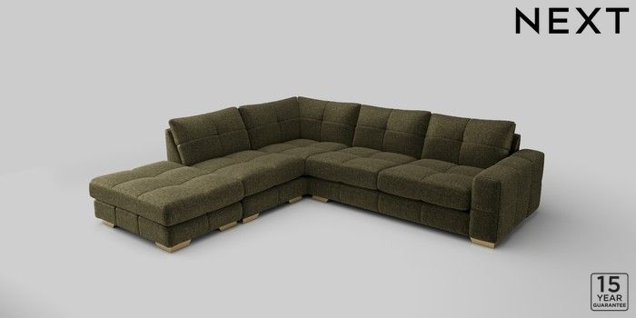 7.2.10 Brooke Deep Sit Large Open End Corner Chaise - Left Hand Plush Chenille Moss Green Large Square Angle - Brushed Brass | Made Click here to use our website with more accessibility support, for example screen readers