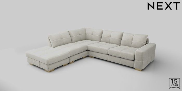 7.2.10 Brooke Deep Sit Large Open End Corner Chaise - Left Hand Plush Chenille Oyster Large Square Angle - Brushed Brass | Made Click here to use our website with more accessibility support, for example screen readers