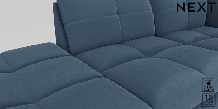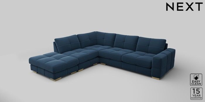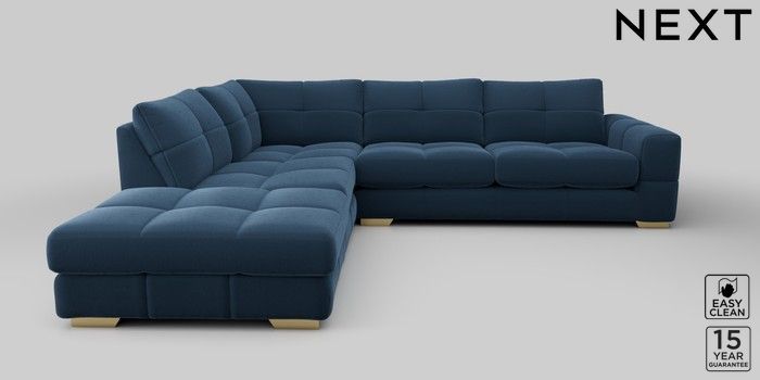 7.2.10 Brooke Deep Sit Large Open End Corner Chaise - Left Hand Plush Velvet Easy Clean Airforce Blue Large Square Angle - Brushed Brass | Made Click here to use our website with more accessibility support, for example screen readers