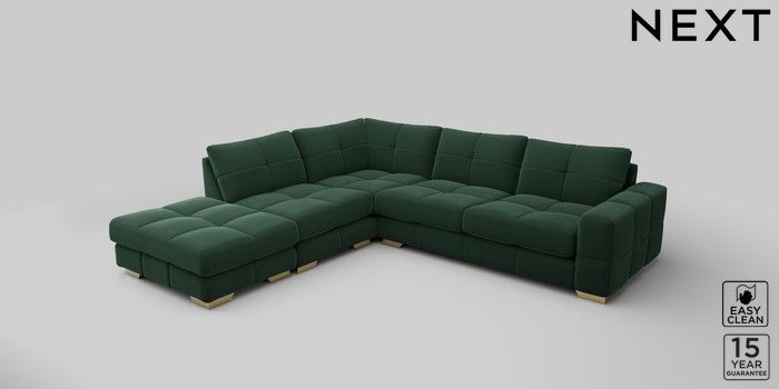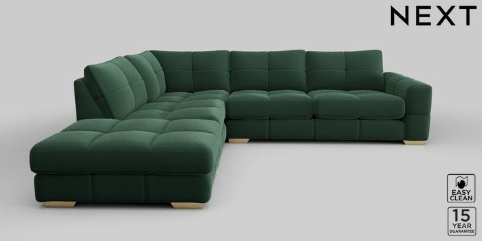 7.2.10 Brooke Deep Sit Large Open End Corner Chaise - Left Hand Plush Velvet Easy Clean Bottle Green Large Square Angle - Brushed Brass | Made Click here to use our website with more accessibility support, for example screen readers