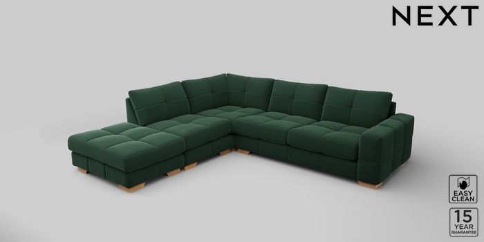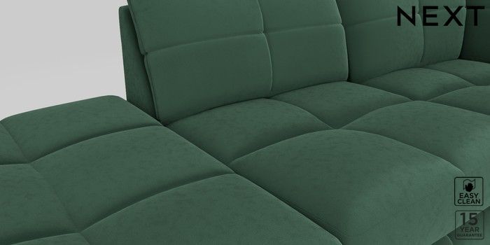7.2.10 Brooke Deep Sit Large Open End Corner Chaise - Left Hand Plush Velvet Easy Clean Bottle Green Large Square Angle - Light | Made Click here to use our website with more accessibility support, for example screen readers