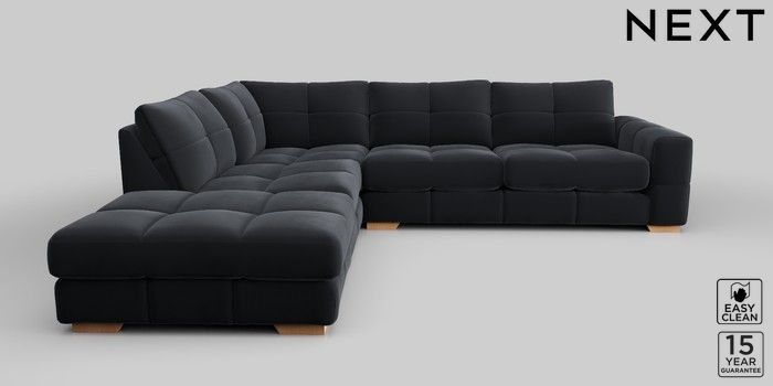 7.2.10 Brooke Deep Sit Large Open End Corner Chaise - Left Hand Plush Velvet Easy Clean Charcoal Grey Large Square Angle - Light | Made Click here to use our website with more accessibility support, for example screen readers