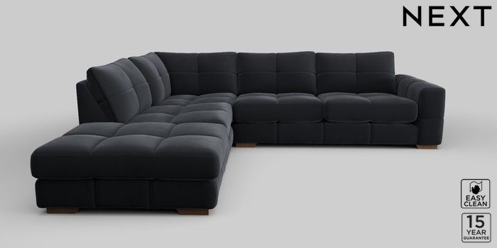 7.2.10 Brooke Deep Sit Large Open End Corner Chaise - Left Hand Plush Velvet Easy Clean Charcoal Grey Large Square Angle - Mid | Made Click here to use our website with more accessibility support, for example screen readers