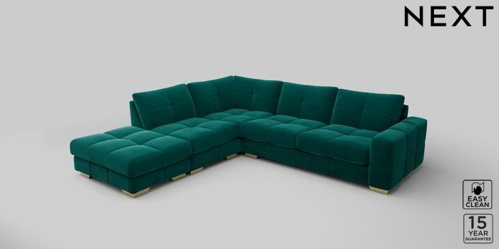 7.2.10 Brooke Deep Sit Large Open End Corner Chaise - Left Hand Plush Velvet Easy Clean Juniper Green Large Square Angle - Brushed Brass | Made Click here to use our website with more accessibility support, for example screen readers