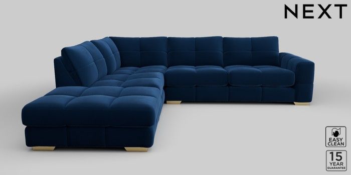 7.2.10 Brooke Deep Sit Large Open End Corner Chaise - Left Hand Plush Velvet Easy Clean Navy Blue Large Square Angle - Brushed Brass | Made Click here to use our website with more accessibility support, for example screen readers