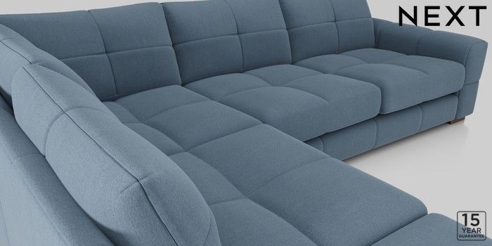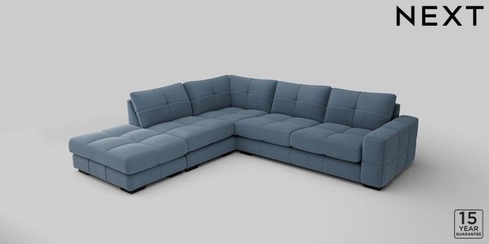 7.2.10 Brooke Deep Sit Large Open End Corner Chaise - Left Hand Relaxed Linen Look Mid Blue Large Square Angle - Dark | Made Click here to use our website with more accessibility support, for example screen readers