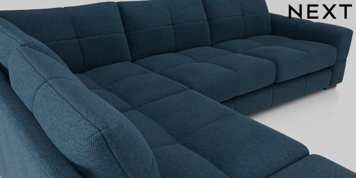7.2.10 Brooke Deep Sit Large Open End Corner Chaise - Left Hand Ripple Chenille Dark Blue Large Square Angle - Gunmetal | Made Click here to use our website with more accessibility support, for example screen readers