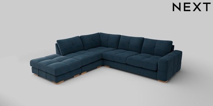 7.2.10 Brooke Deep Sit Large Open End Corner Chaise - Left Hand Ripple Chenille Dark Blue Large Square Angle - Light | Made Click here to use our website with more accessibility support, for example screen readers