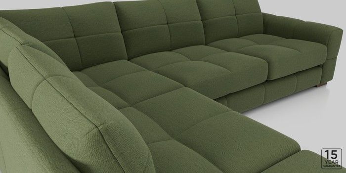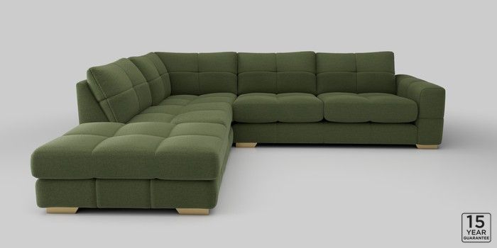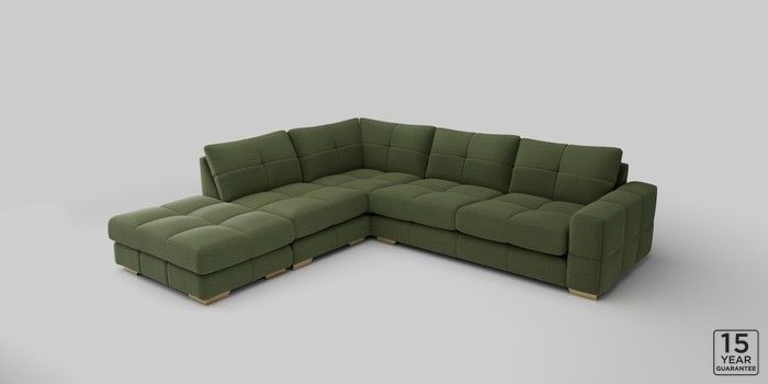 7.2.10 Brooke Deep Sit Large Open End Corner Chaise - Left Hand Ripple Chenille Mid Moss Green Large Square Angle - Brushed Brass | Made Click here to use our website with more accessibility support, for example screen readers
