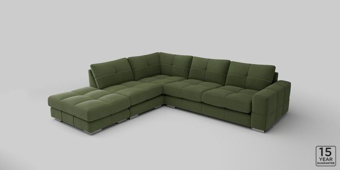7.2.10 Brooke Deep Sit Large Open End Corner Chaise - Left Hand Ripple Chenille Mid Moss Green Large Square Angle - Chrome Metal | Made Click here to use our website with more accessibility support, for example screen readers